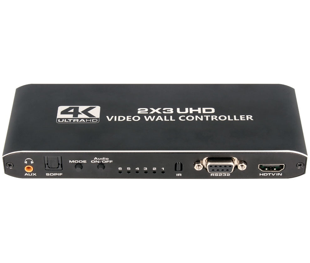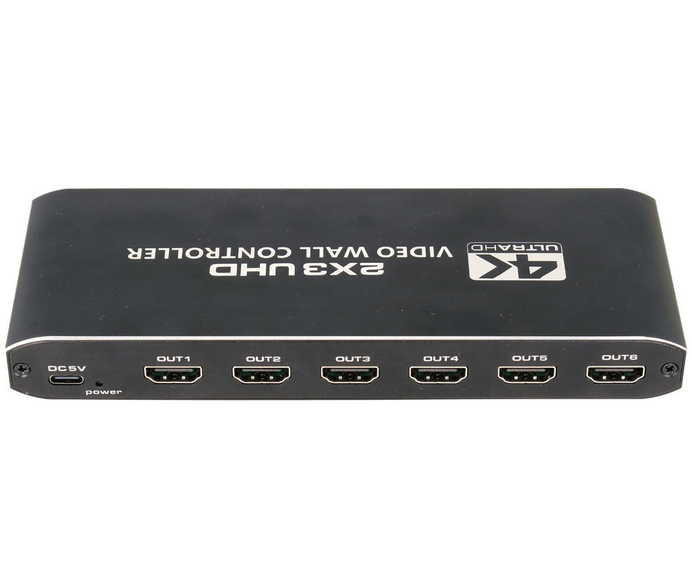 Controlador para la realización de un Video WALL con seis pantallas. Permite que una entrada de vídeo HDMI v1.4, pueda visualizarse en una matriz de seis pantallas.