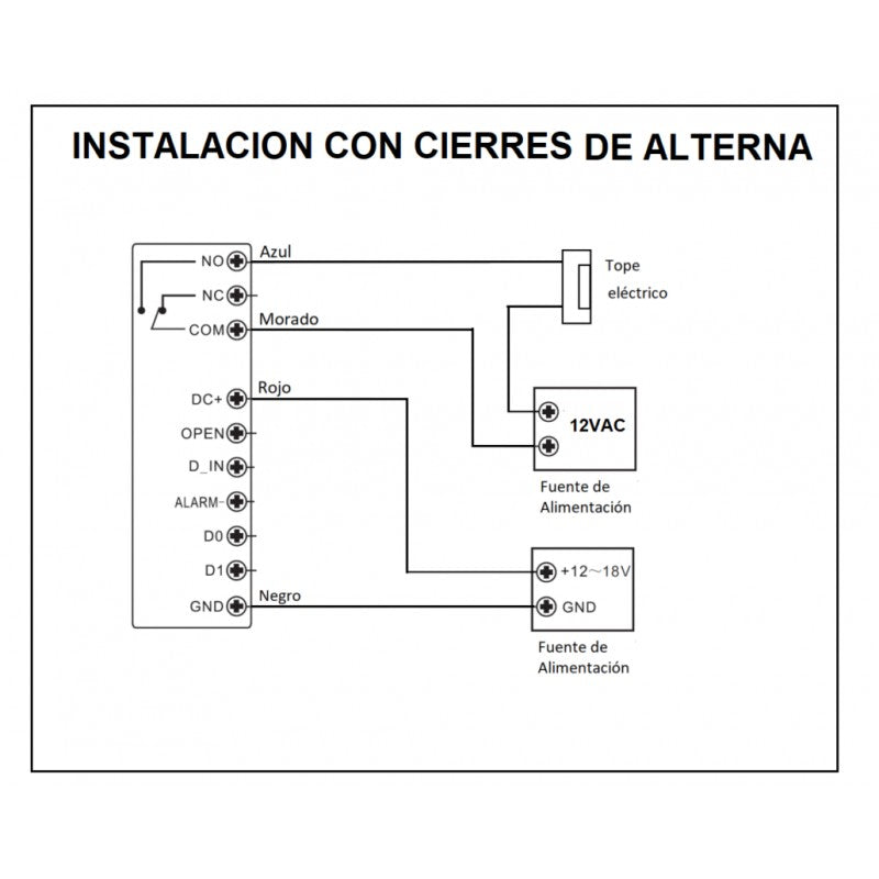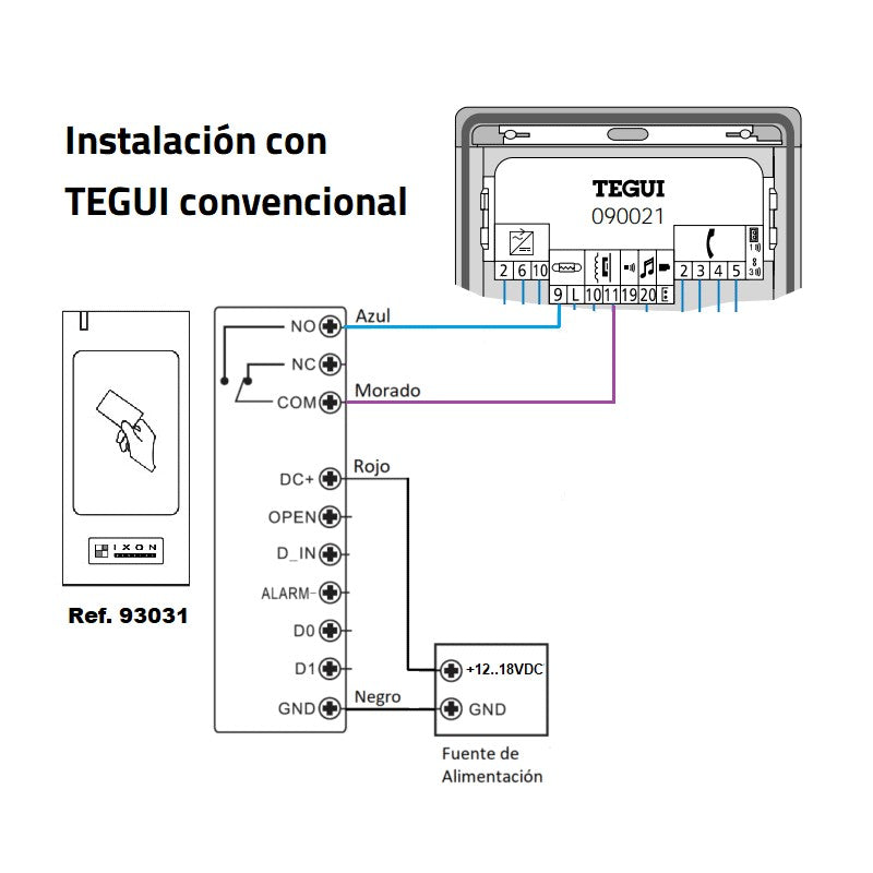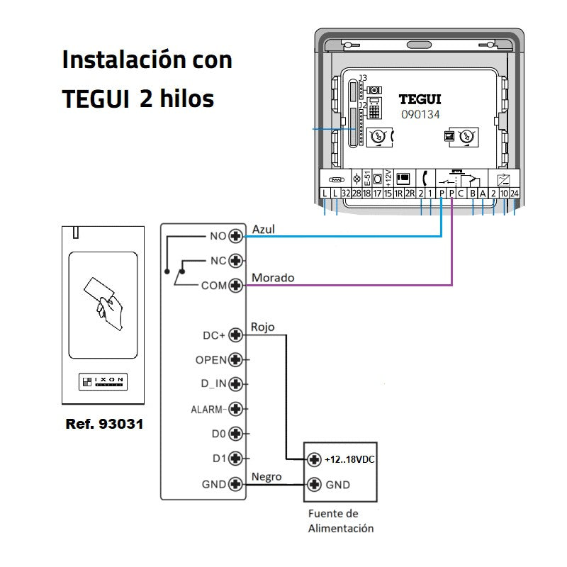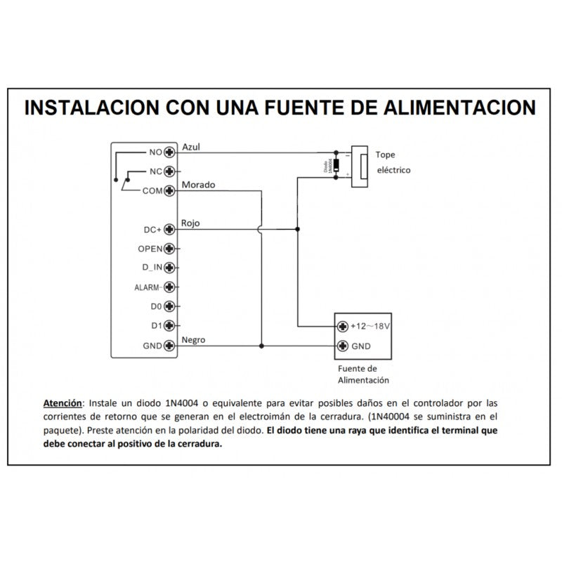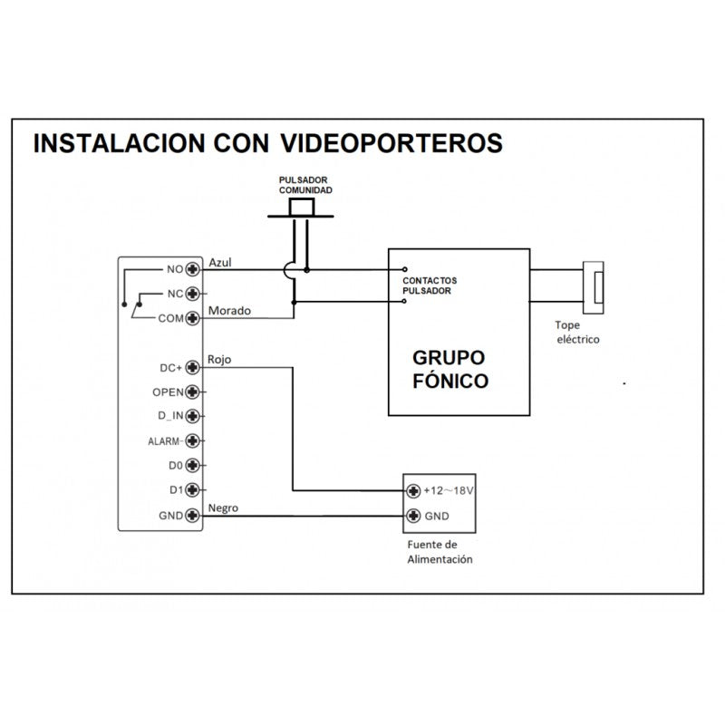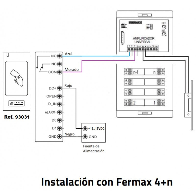 Admite la entrada de un contacto magnético con señalizacion audible si la puerta permanece abierta más de 1 minuto, asi como salida de alarma por sabotaje y anti-tamper