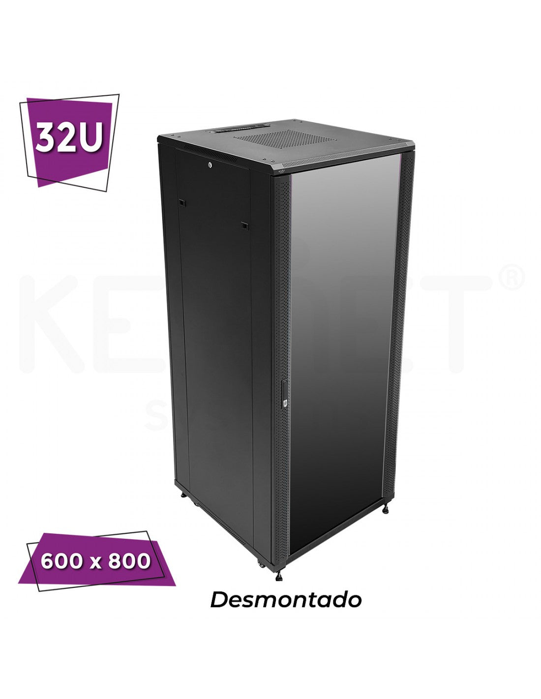 Rack 19" desmontasdo excelente acabado. Estructura robusta. Polivalente. Puerta frontal de cristal. Puerta posterior sólida. Puerta reversible 180º y sustituibles por puertas de rejilla de 1 o 2 hojas. Paneles laterales extraíbles con llave. Se suministra con ruedas, patas y tornillería. Dispone de espacio para instalar ventiladores de techo y ranuras que permiten la circulación de aire. Acceso superior e inferior de tipo cepillo antipolvo para cableado. Uso general en oficinas y pequeños centros de datos.
